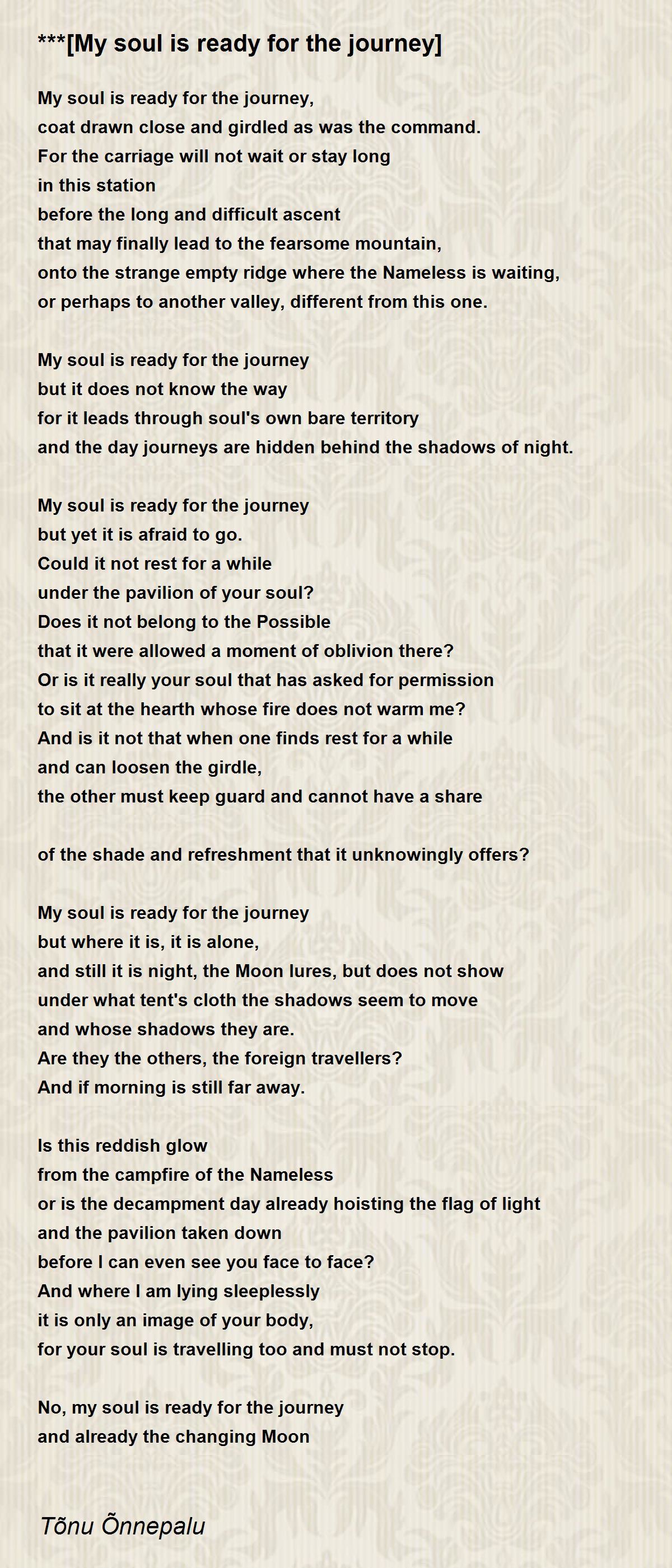 My soul is ready for the journey,
