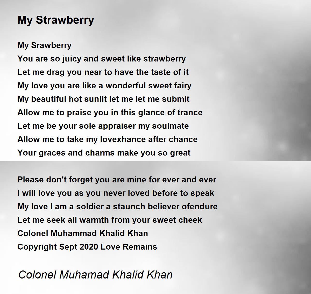 Strawberry is juicy. Love is so wonderful like strawberry. You have powerfully imagined love in a nice way. You can seek whole warmth of wonderful love. This poem is very interesting! ..all stars.