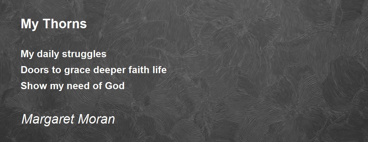 Our thorns remind us of the real situation. They are a profound blessing because they help us to know how much we need God. My thorns humble me and teach me to rely on God's strength rather than on my own.