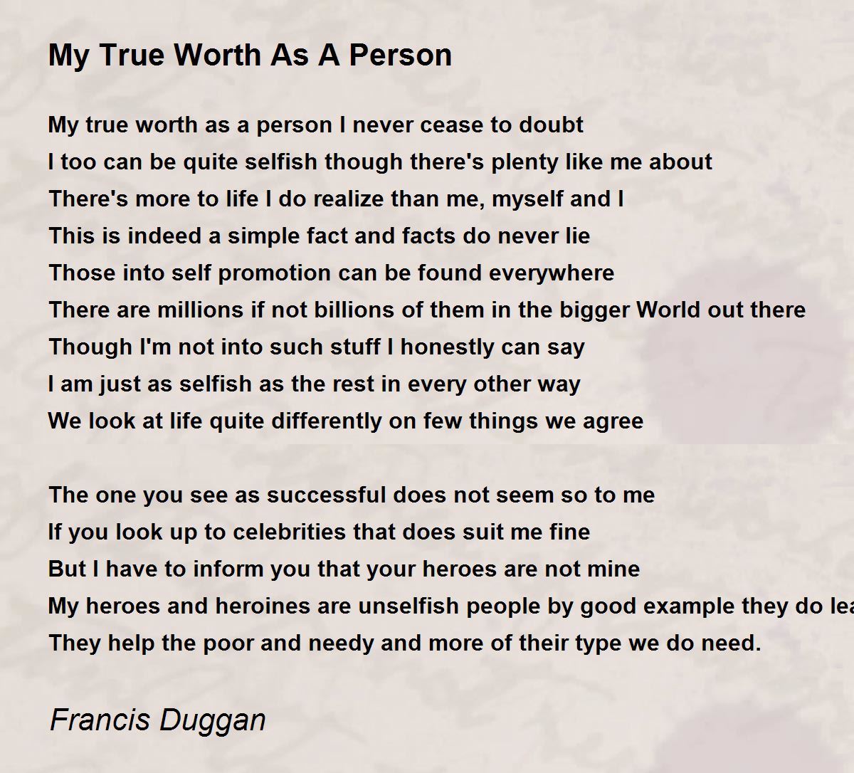 My true worth as a person I never cease to doubt