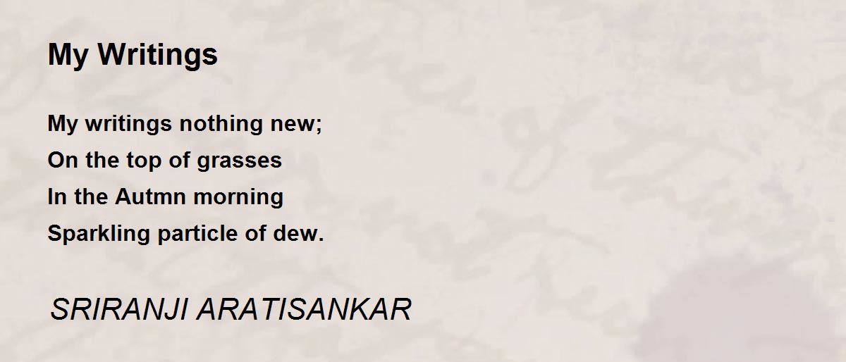 My writings nothing new; On the top of grasses In the Autmn morning Sparkling particle of dew.