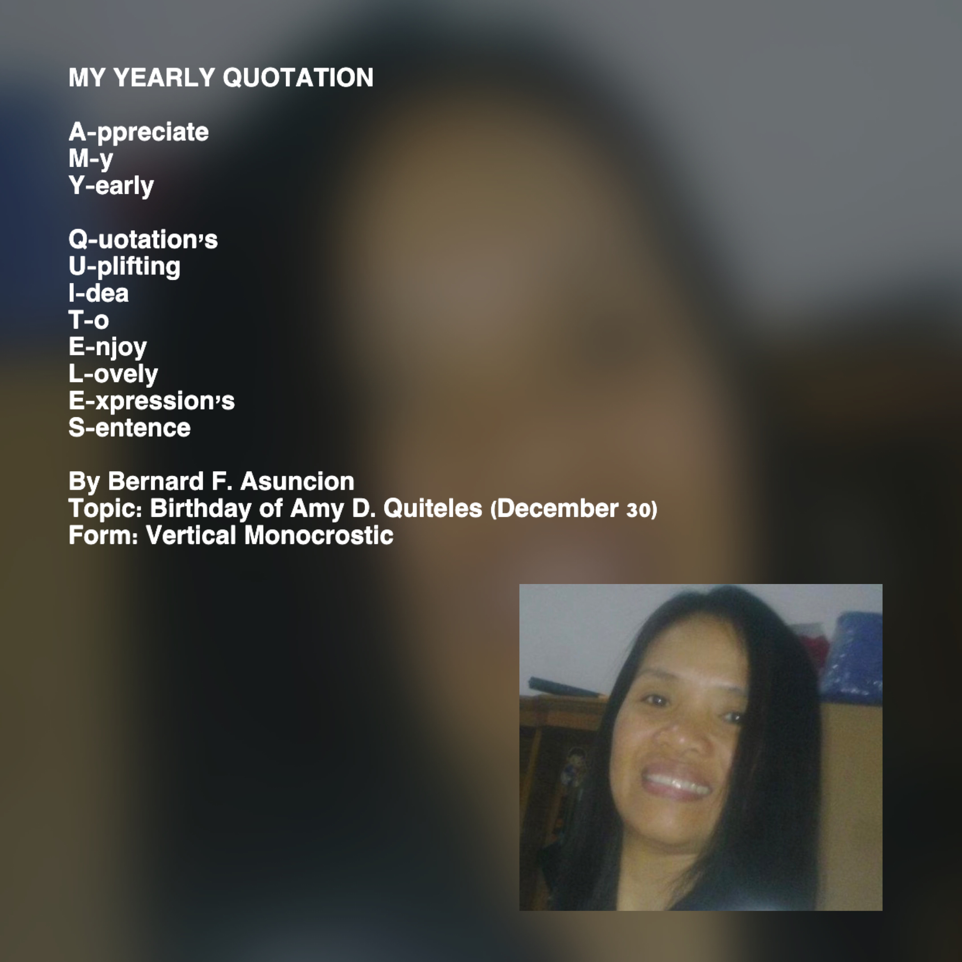 Topic: Birthday of Amy D. Quiteles (December 30)