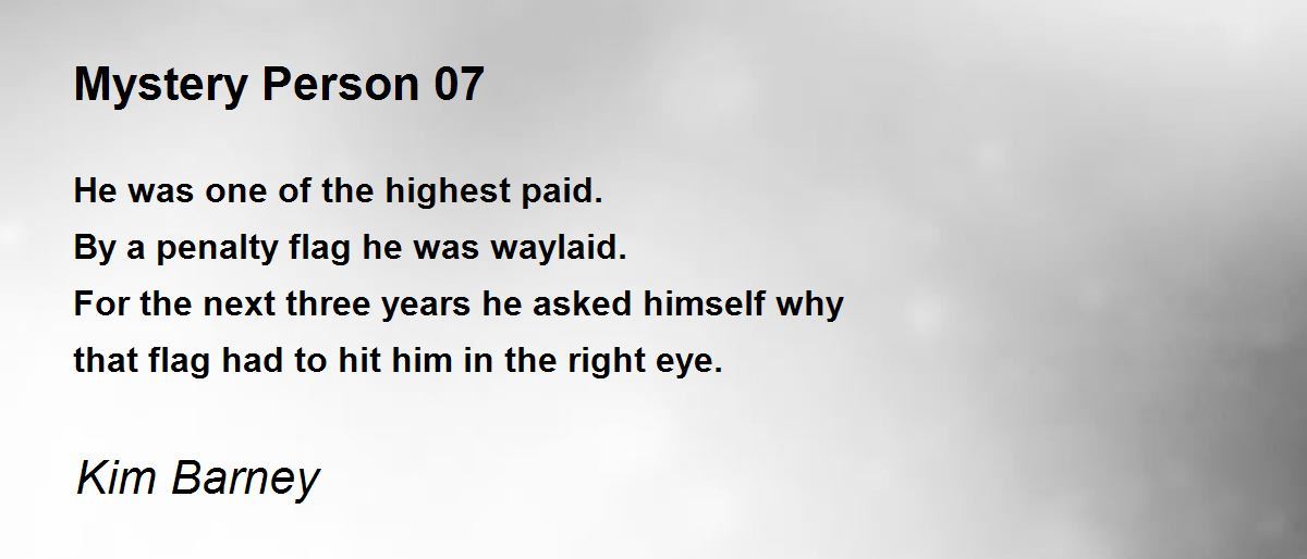 Eye, yi, yi. I'm not a sports person, so no use of me guessing. Good poem though. Thanks for posting.