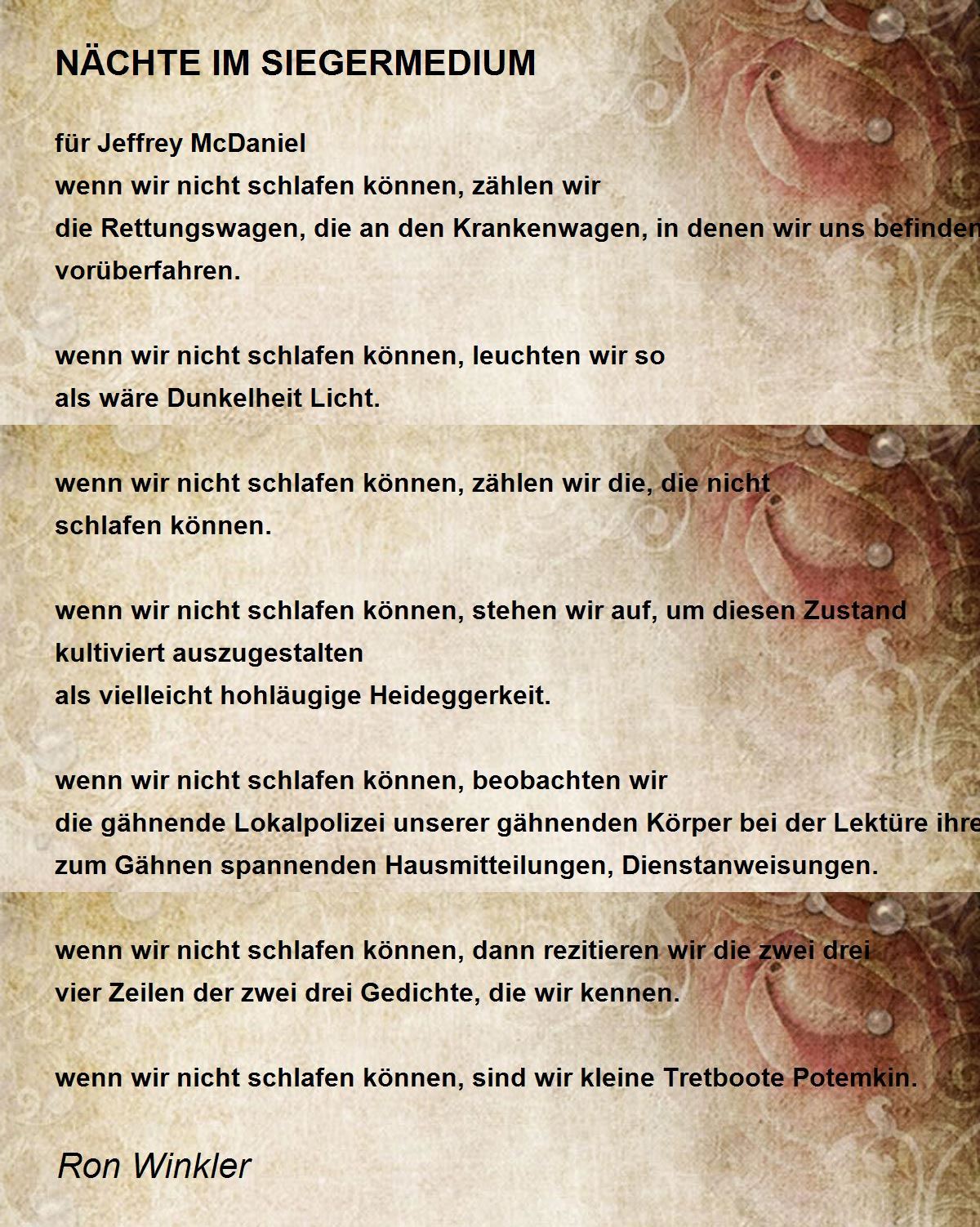 vier Zeilen der zwei drei Gedichte, die wir kennen.