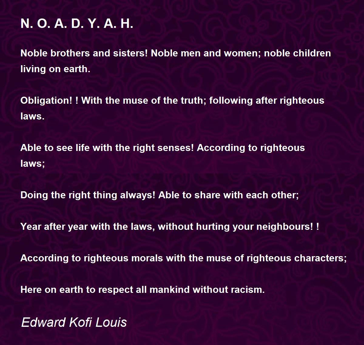 Noble brothers and sisters! Noble men and women; noble children living on earth.