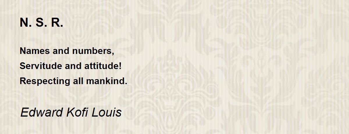 Names and numbers, Servitude and attitude! Respecting all mankind.