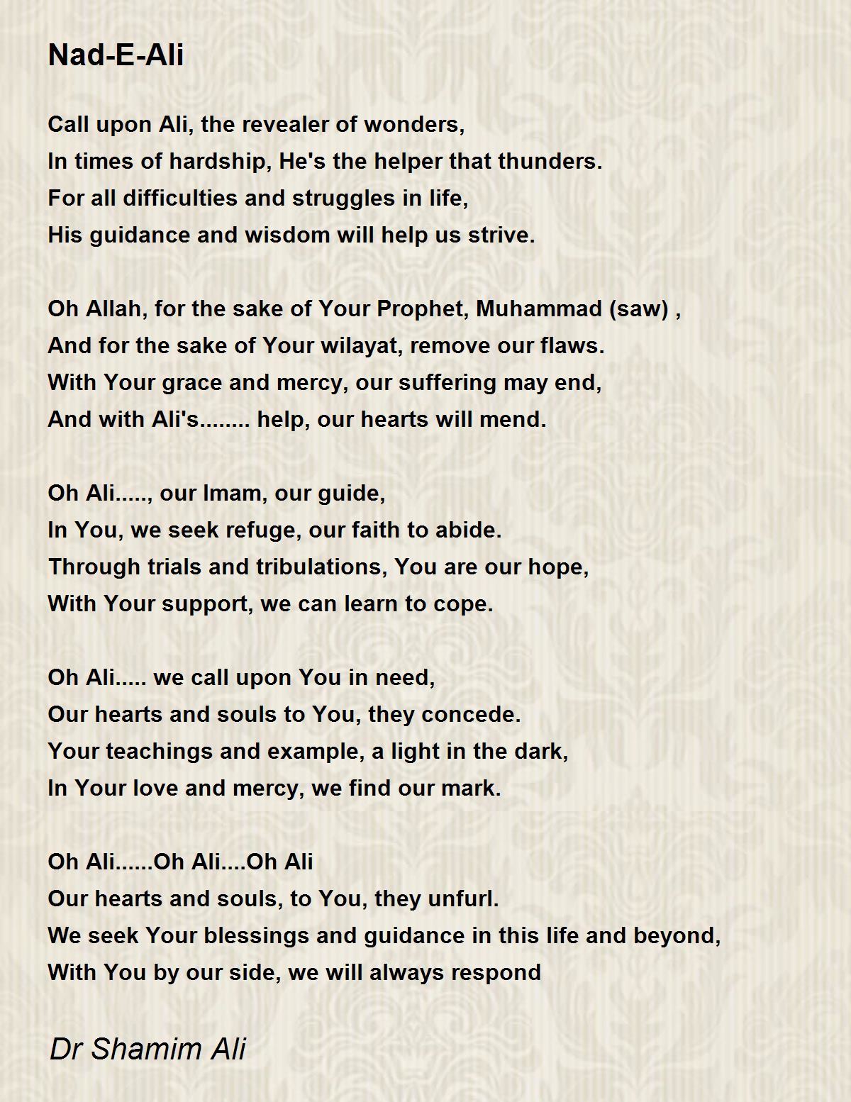 Oh Ali..... we call upon You in need,