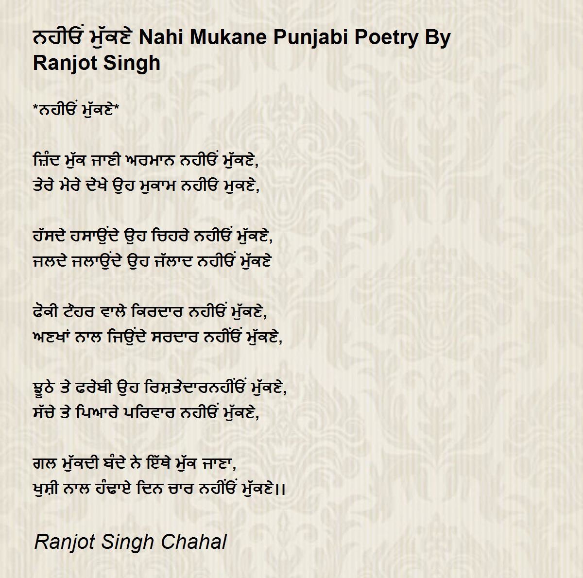 ਗਲ ਮੁੱਕਦੀ ਬੰਦੇ ਨੇ ਇੱਥੇ ਮੁੱਕ ਜਾਣਾ,
