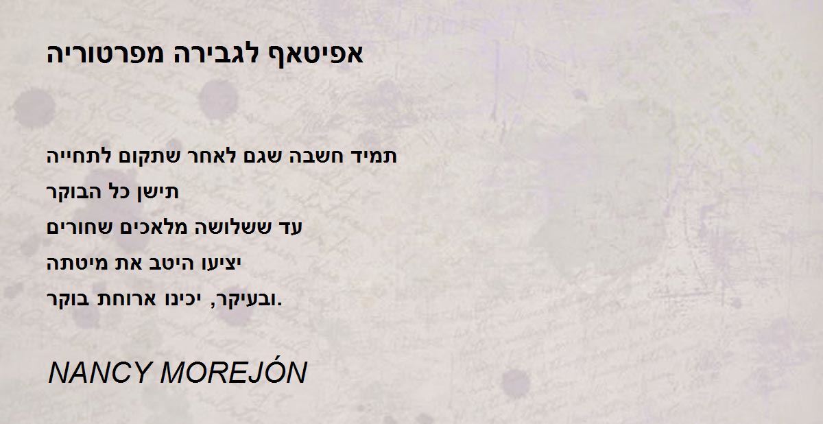 תמיד חשבה שגם לאחר שתקום לתחייה תישן כל הבוקר עד ששלושה מלאכים שחורים יציעו היטב את מיטתה ובעיקר, יכינו ארוחת בוקר.