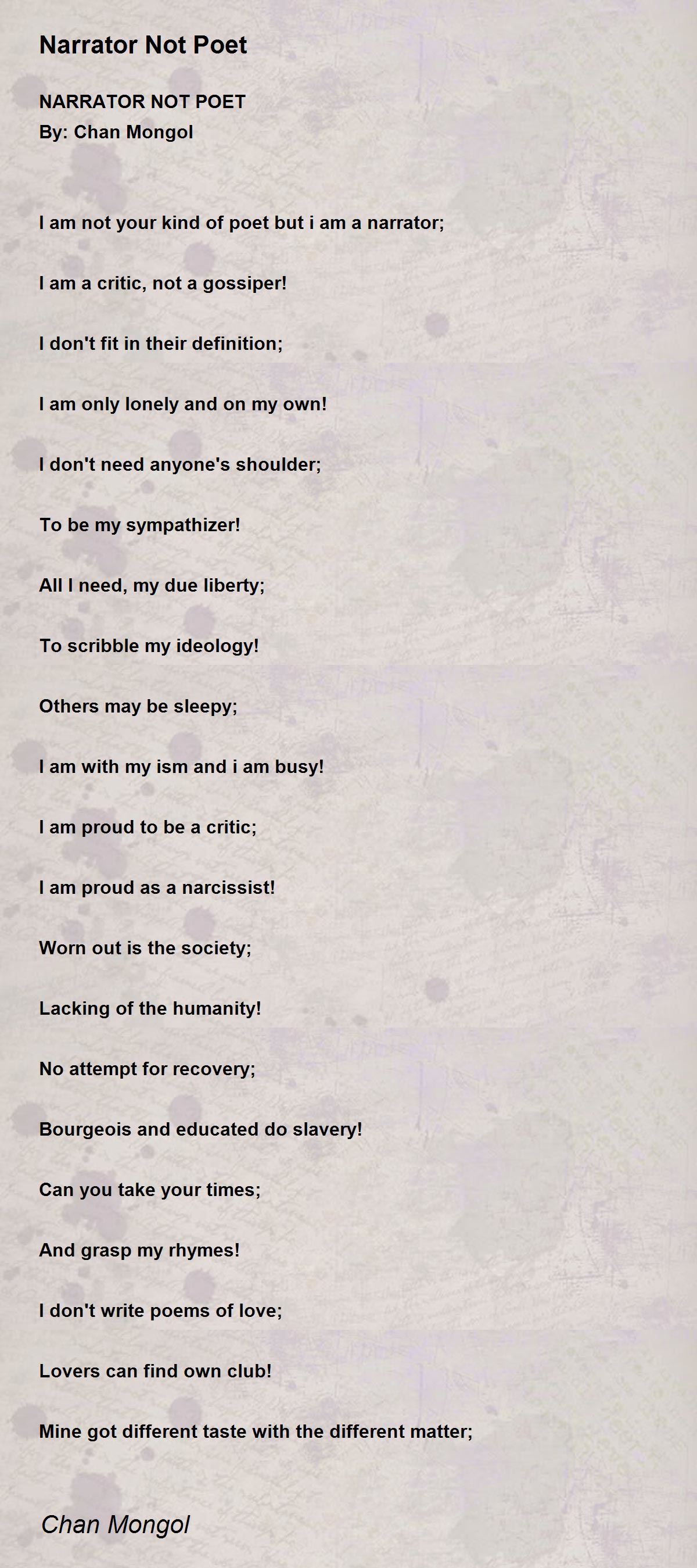 NARRATOR NOT POET