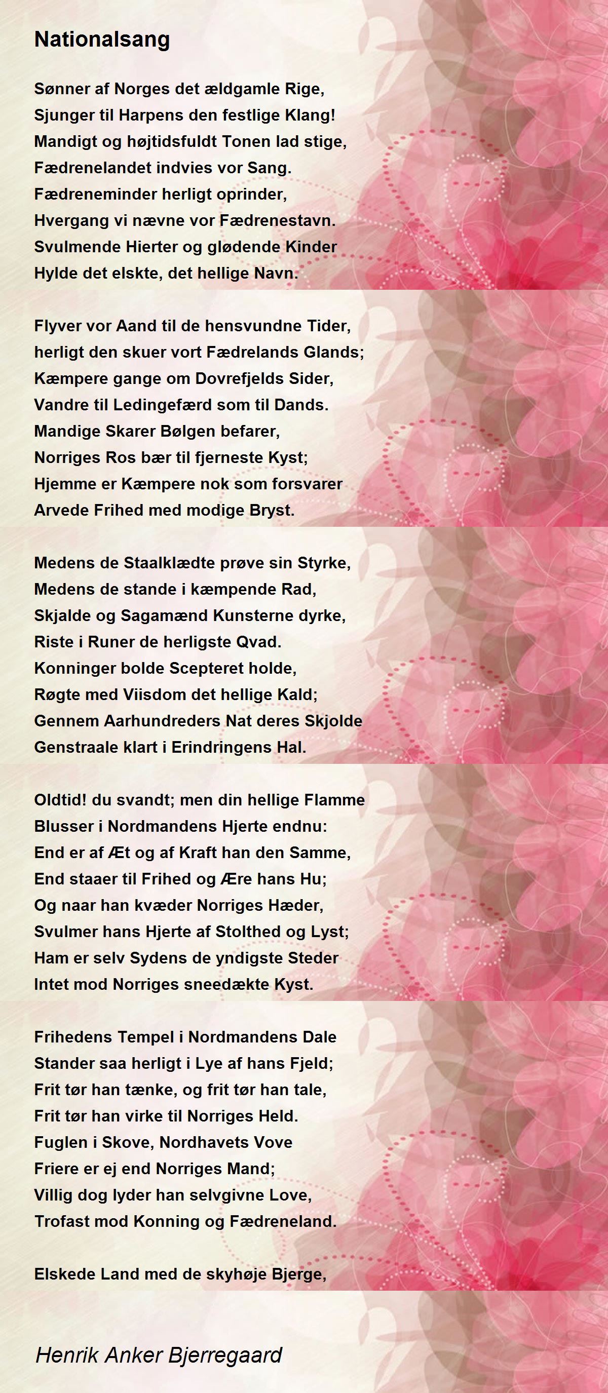 Og naar han kvæder Norriges Hæder,
