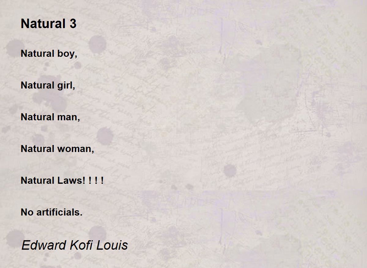 Natural boy, Natural girl, Natural man, Natural woman, Natural Laws! ! ! ! No artificials.
