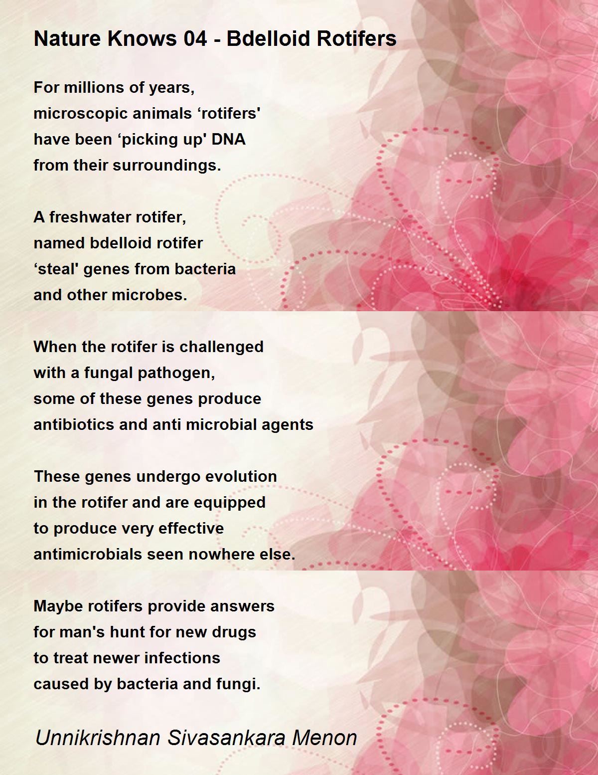 While man prides himself that he has discovered the ‘newest thing' about Bdelloid Rotifers, he forgets the Nature ‘invented' it millions of years ago. Thank you LeeAnn.