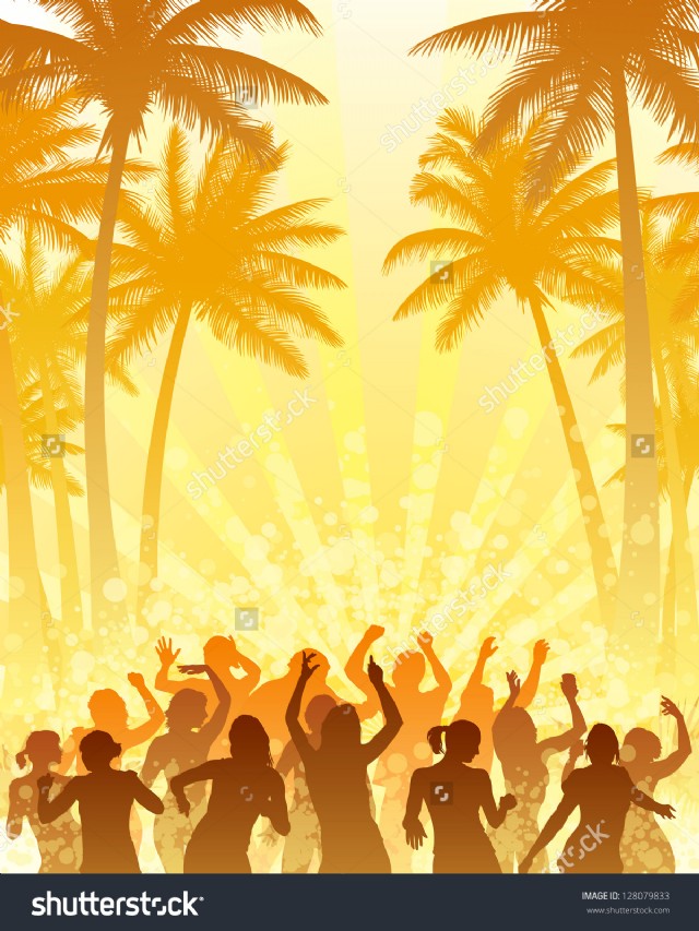 (Graphic: Coconut Palm Trees People Dancing Sun Stock Vector 128079833...