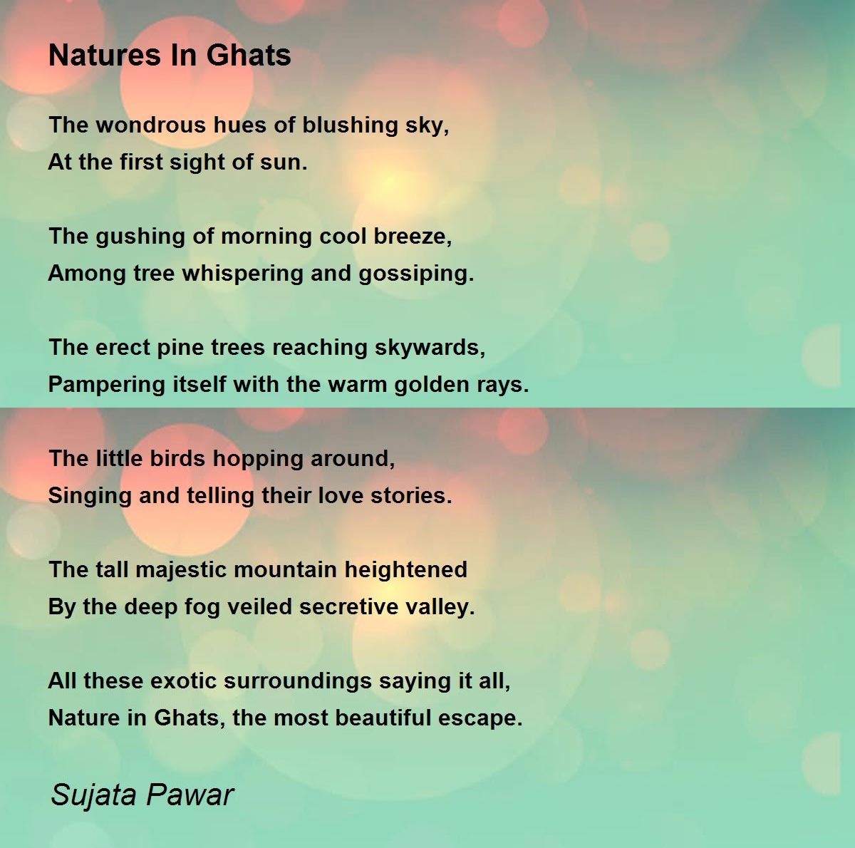 Concise, descriptive and insightful verse. A lovely depiction of the beauty and serenity of Nature. Thanks for sharing, Sujata.