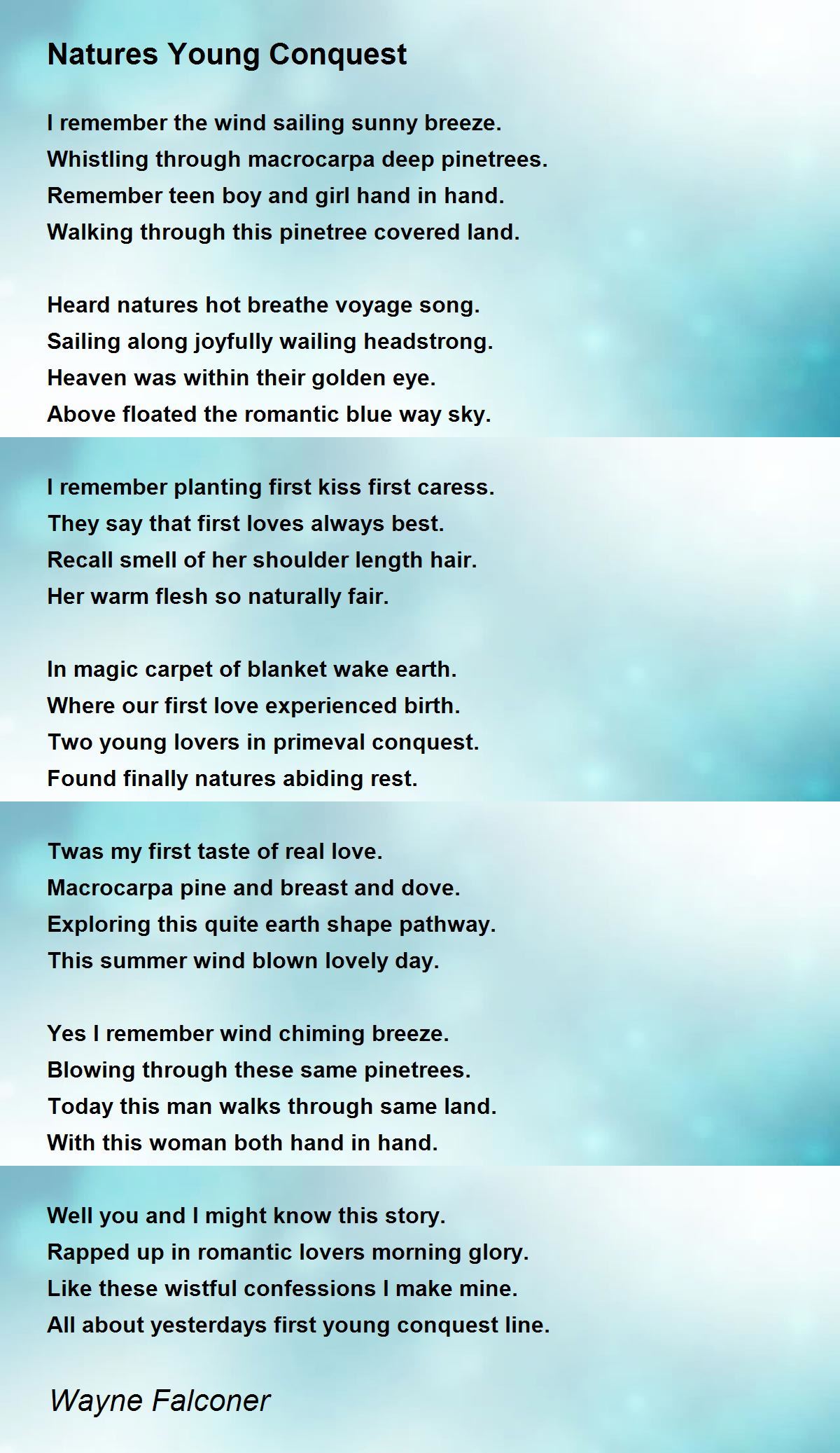 I remember planting first kiss first caress.
