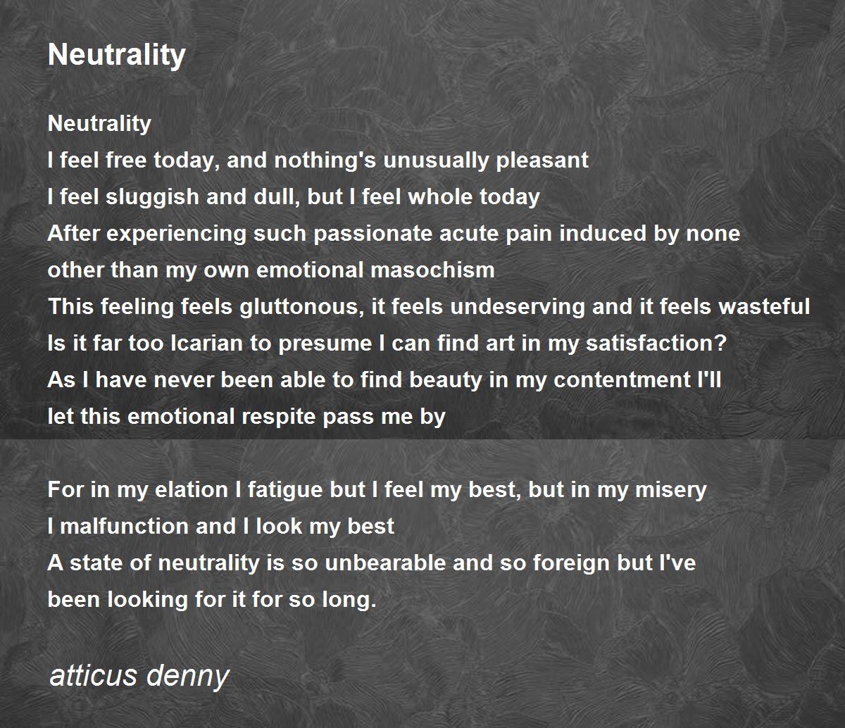 A state of neutrality is so unbearable and so foreign but I've been looking for it for so long.