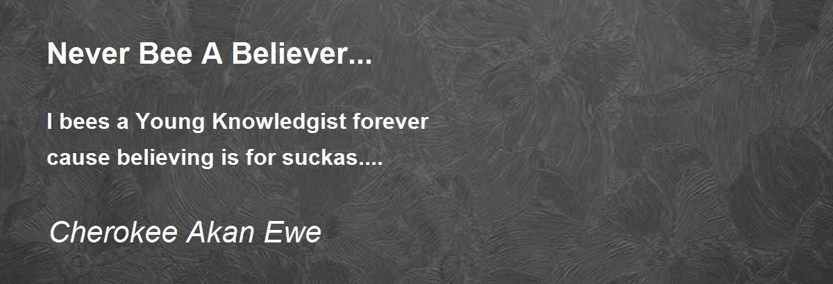 I bees a Young Knowledgist forever cause believing is for suckas....