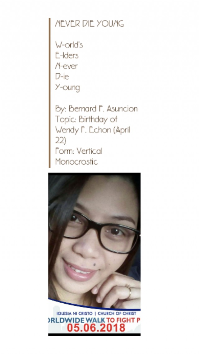 Topic: Birthday of Wendy F. Echon (April 22)