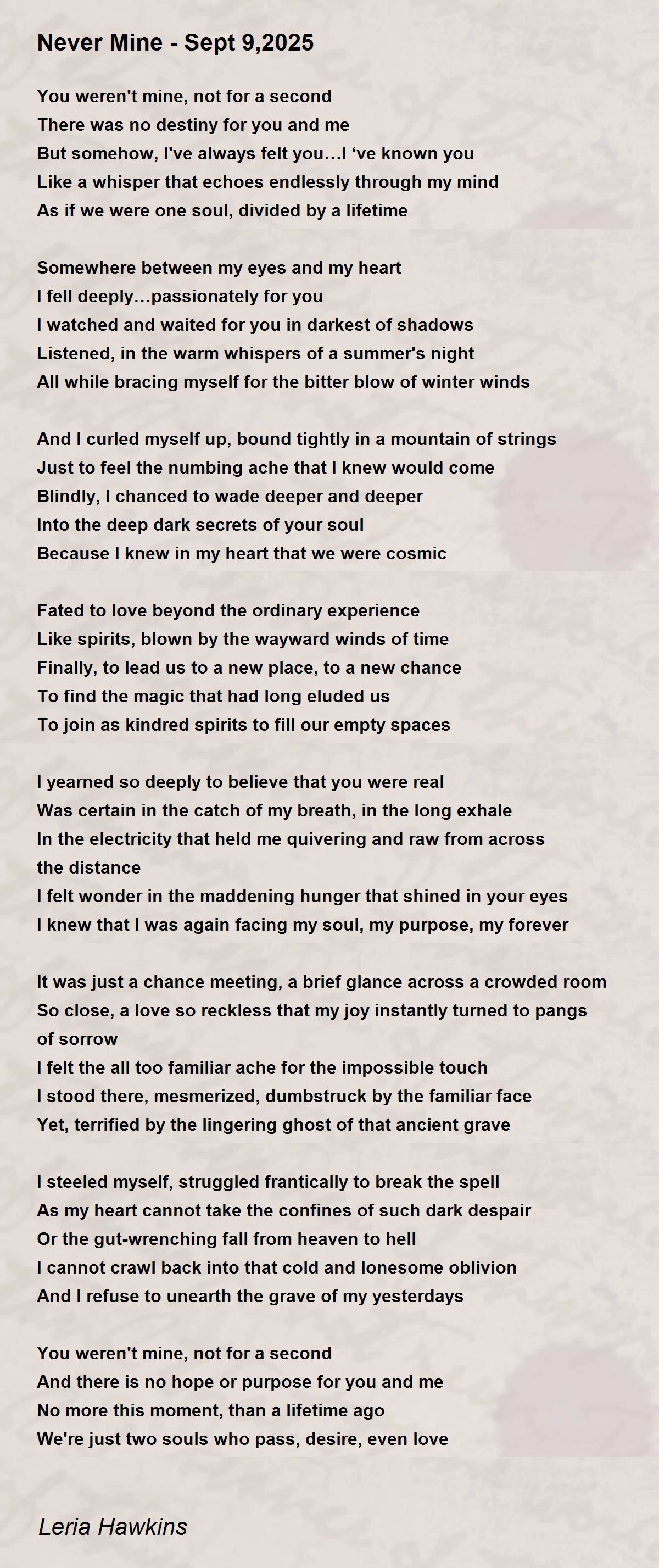 I felt the all too familiar ache for the impossible touch
