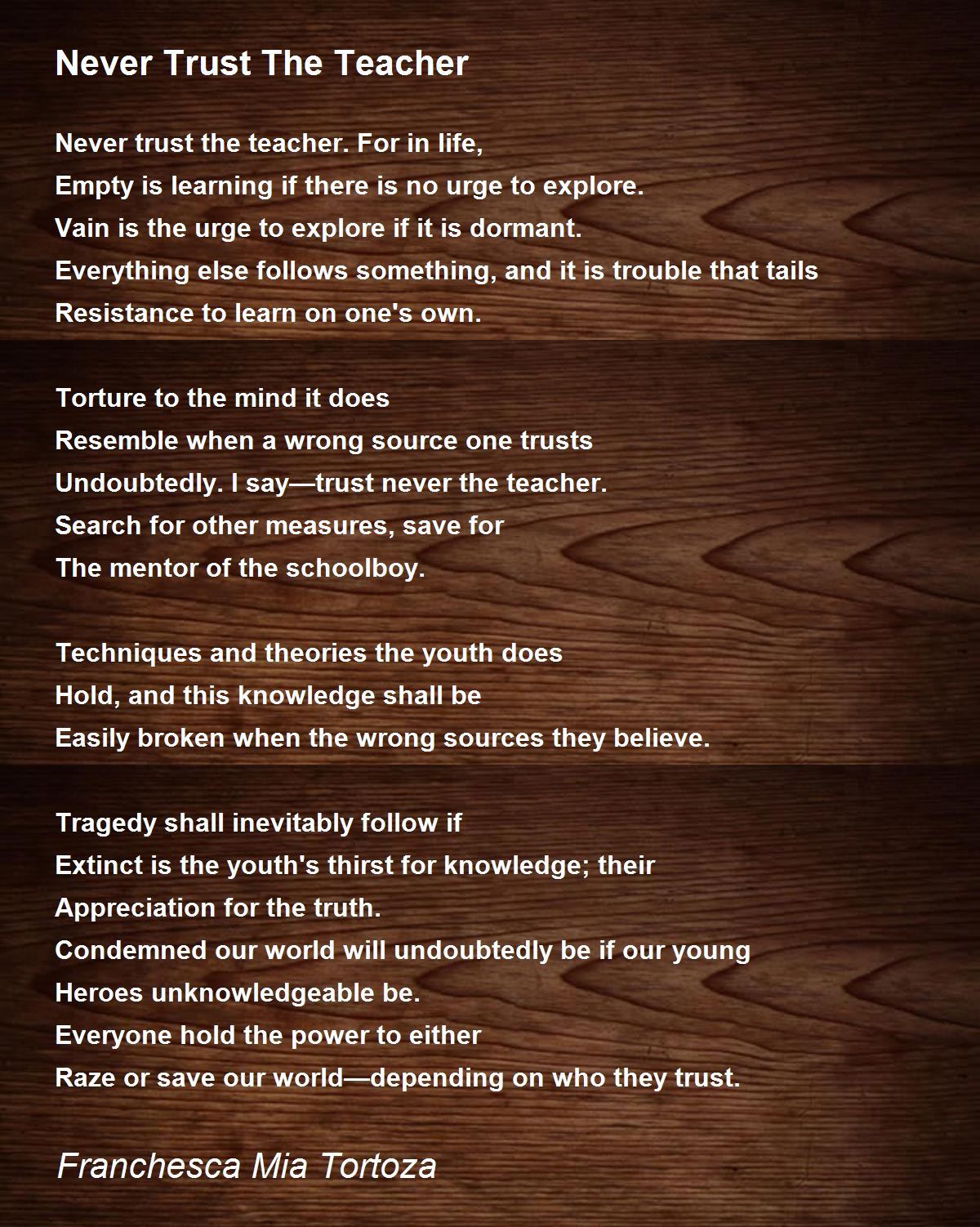 Never trust the teacher. For in life,