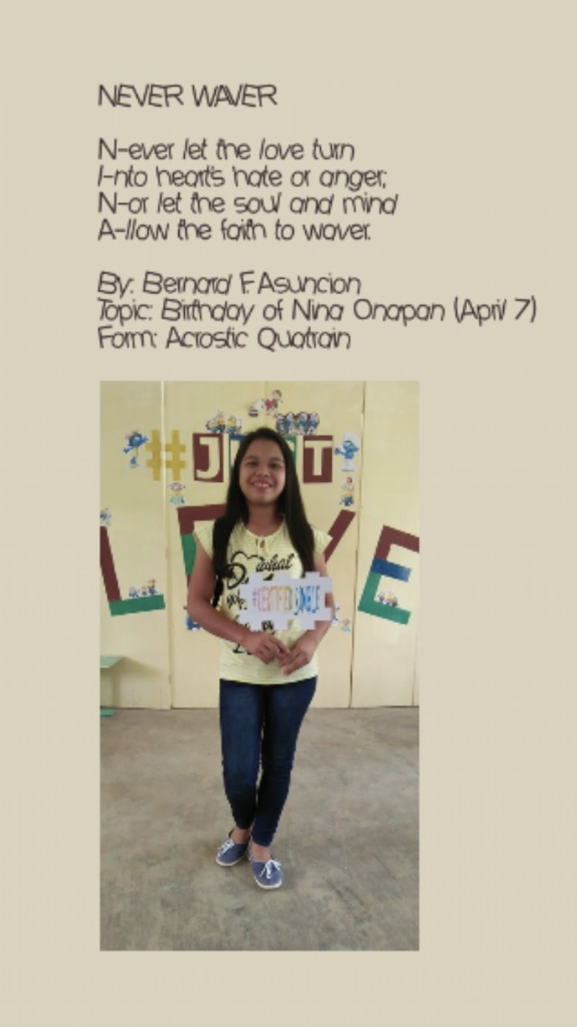 Topic: Birthday of Nina Onapan (April 7)