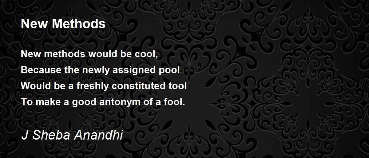 New methods would be cool, Because the newly assigned pool Would be a freshly constituted tool To make a good antonym of a fool.