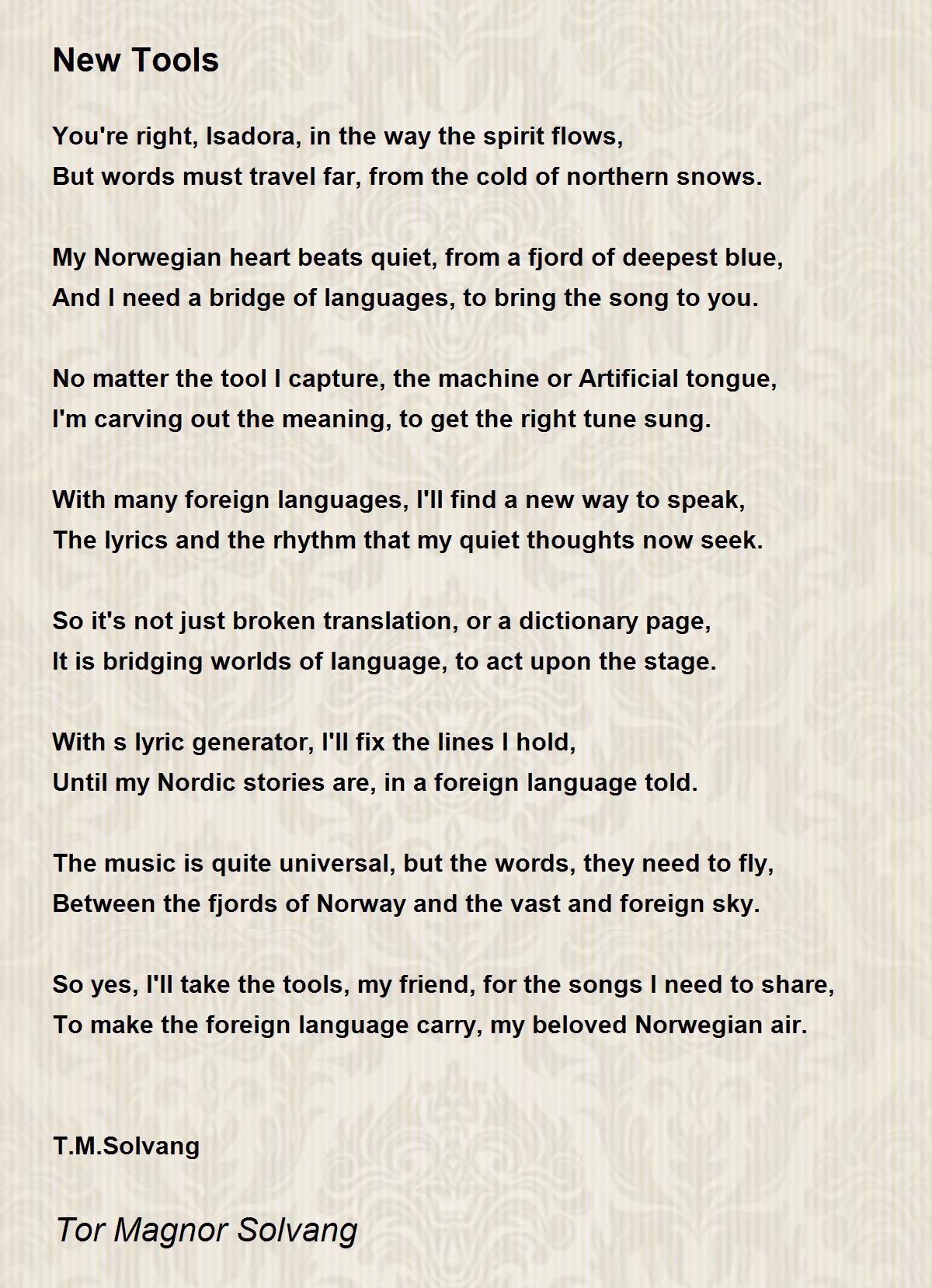 So yes, I'll take the tools, my friend, for the songs I need to share,
