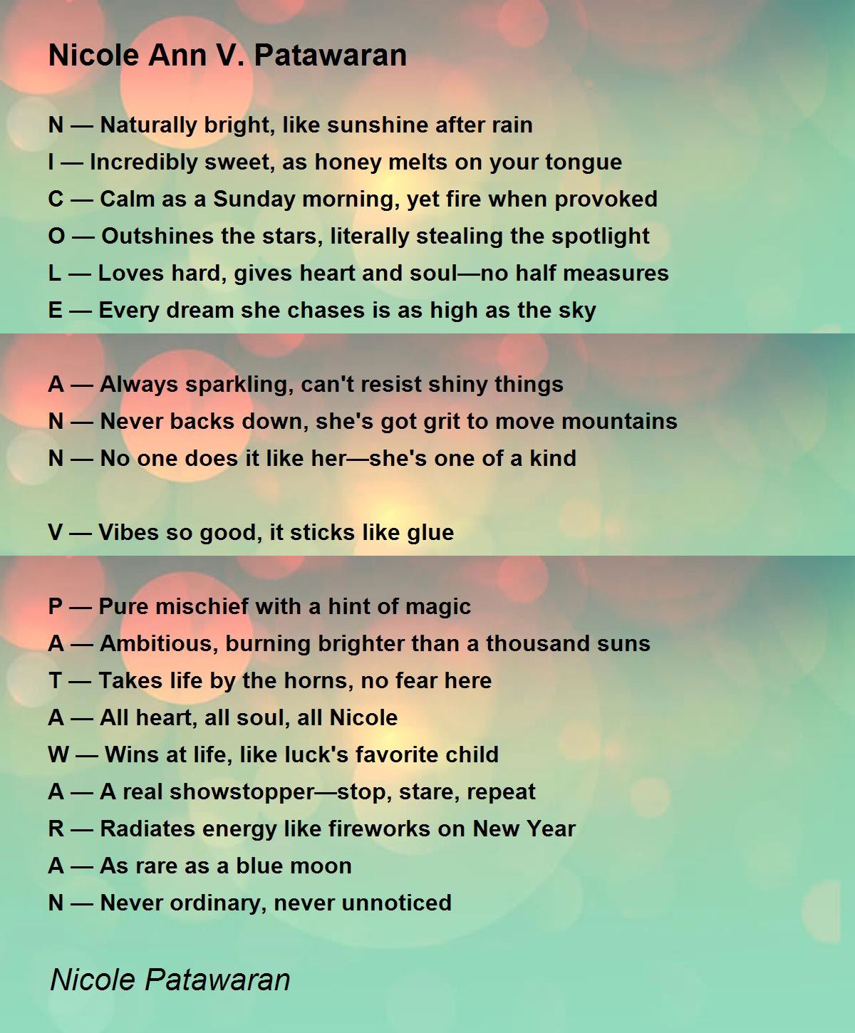A — All heart, all soul, all Nicole