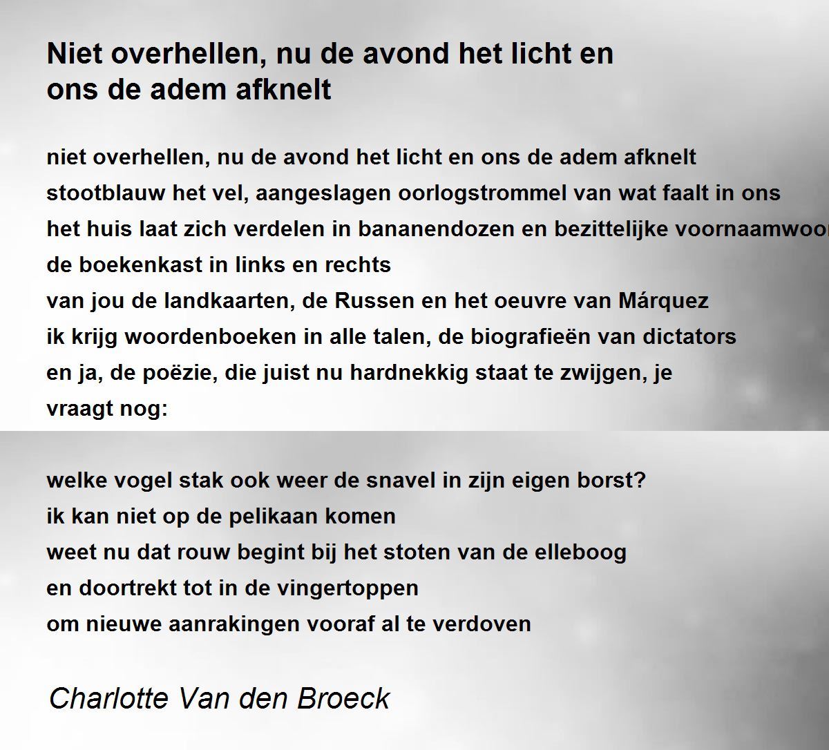 niet overhellen, nu de avond het licht en ons de adem afknelt