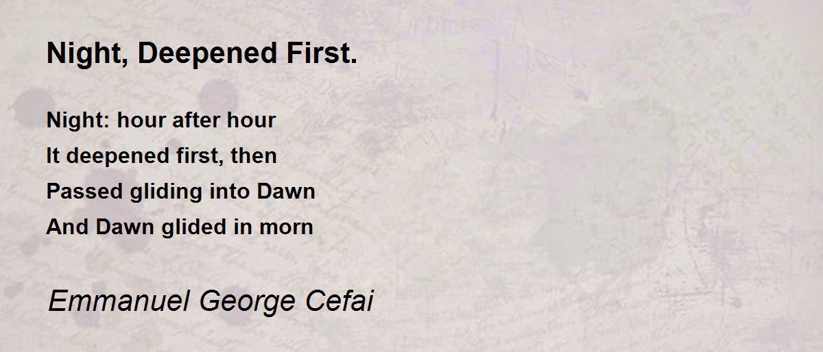 Night: hour after hourIt deepened first, thenPassed gliding into DawnAnd Dawn glided in morn