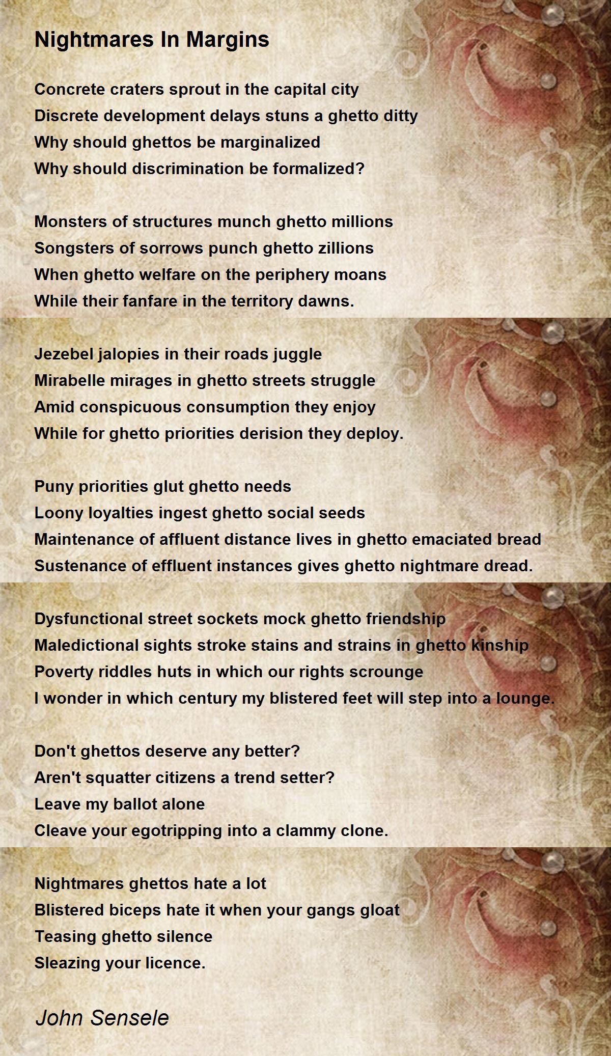 Sustenance of effluent instances gives ghetto nightmare dread.