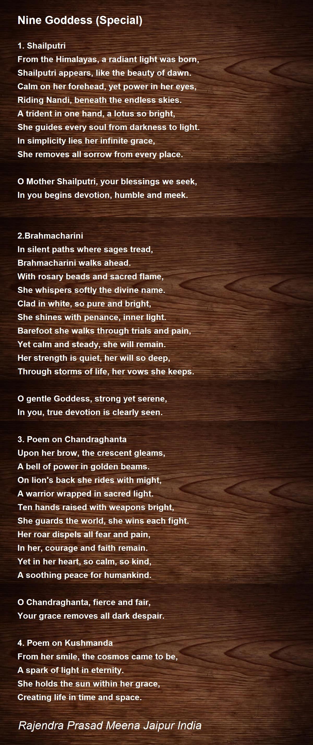 Nine Goddess (Special) Poem by Rajendra Prasad Meena Jaipur India