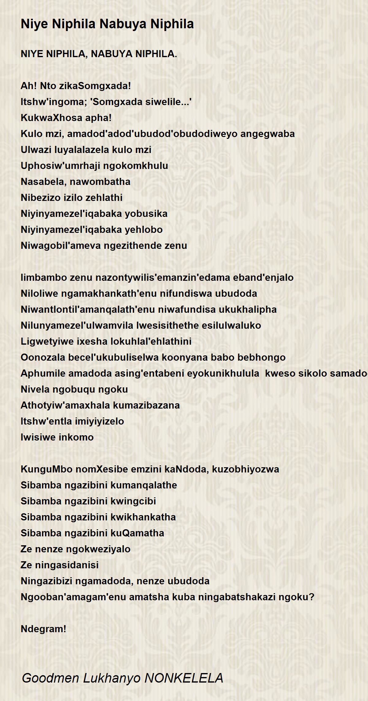 NIYE NIPHILA, NABUYA NIPHILA.