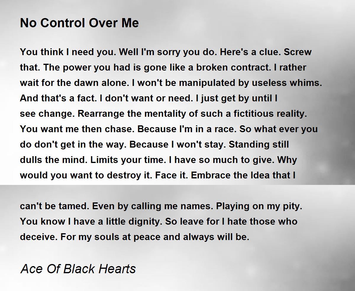 You think I need you. Well I'm sorry you do. Here's a clue. Screw that. The power you had is gone like a broken contract. I rather wait for the dawn alone. I won't be manipulated by useless whims. And that's a fact. I don't want or need. I just get by until I see change. Rearrange the mentality of such a fictitious reality. You want me then chase. Because I'm in a race. So what ever you do don't get in the way. Because I won't stay. Standing still dulls the mind. Limits your time. I have so much to give. Why would you want to destroy it. Face it. Embrace the Idea that I can't be tamed. Even by calling me names. Playing on my pity. You know I have a little dignity. So leave for I hate those who deceive. For my souls at peace and always will be.