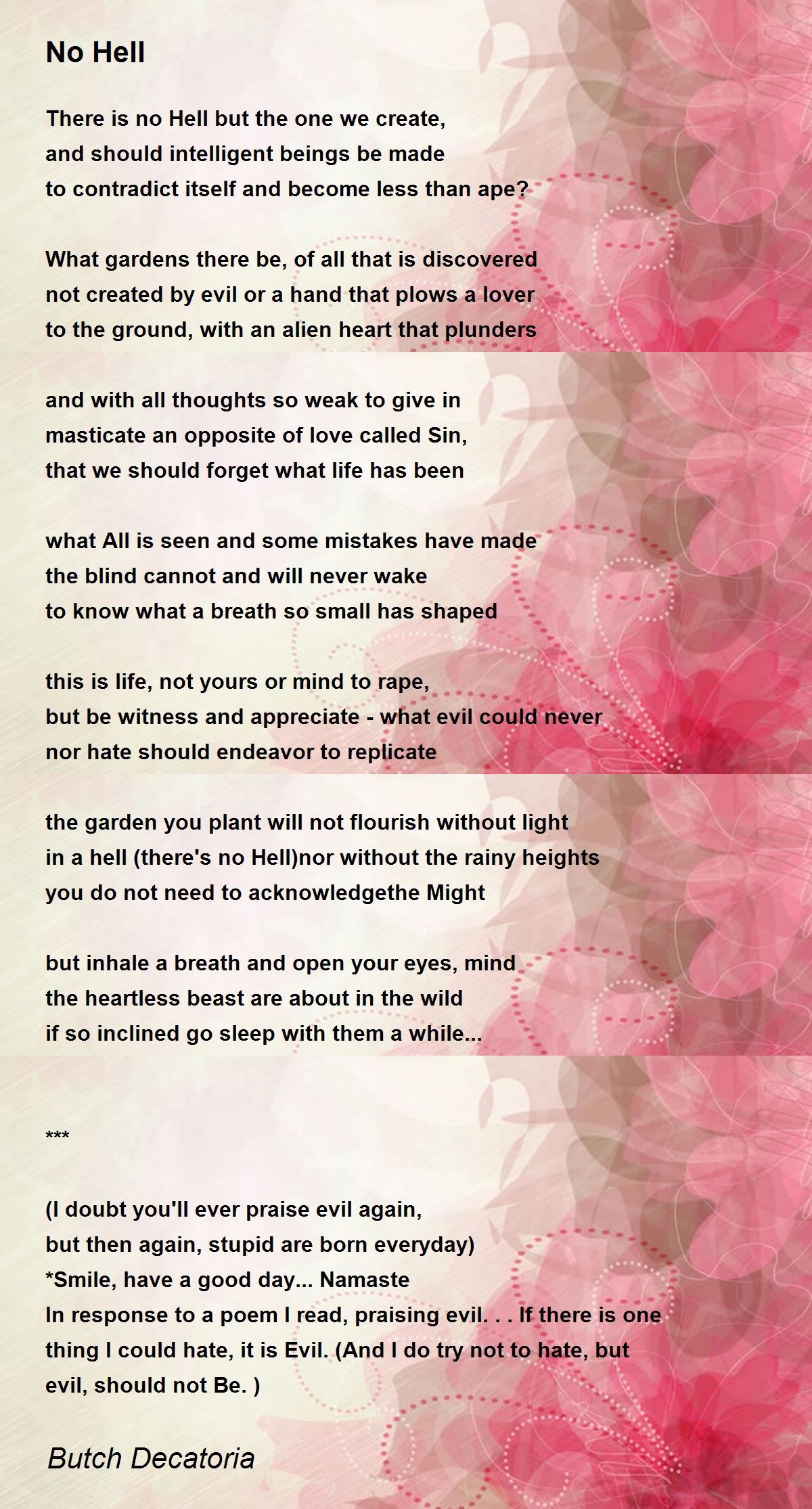 In response to a poem I read, praising evil... If there is one thing I could hate, it is Evil. (And I do try not to hate, but evil, should not Be.)