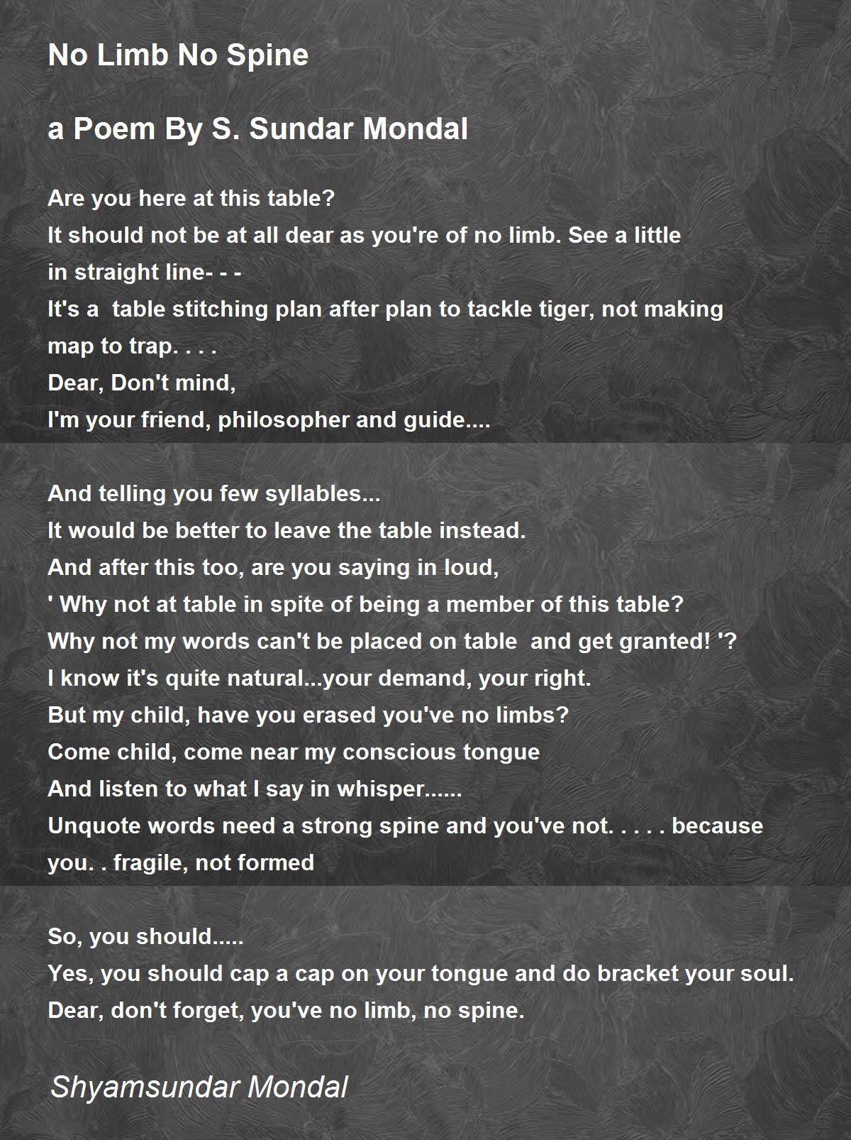 Dear, don't forget, you've no limb, no spine.
