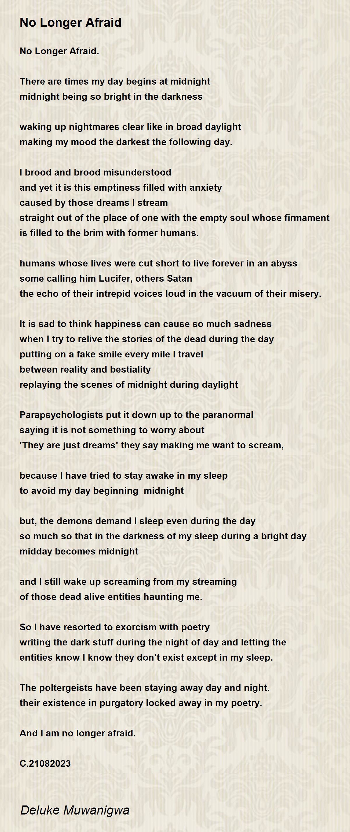 And I am no longer afraid.