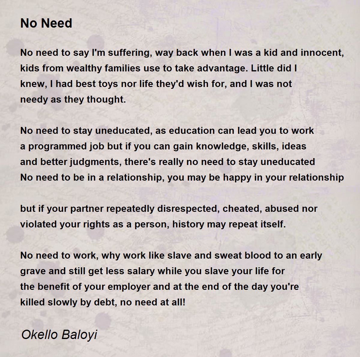 No need to say I'm suffering, way back when I was a kid and innocent, kids from wealthy families use to take advantage. Little did I knew, I had best toys nor life they'd wish for, and I was not needy as they thought.