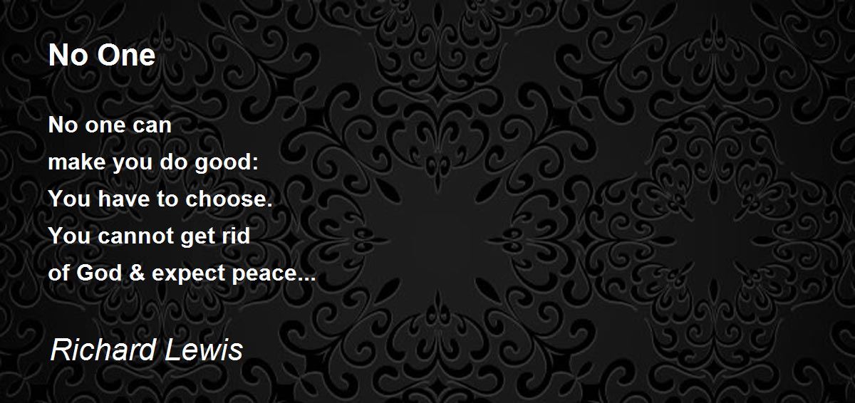 No one can make you do good: You have to choose. You cannot get rid of God & expect peace...