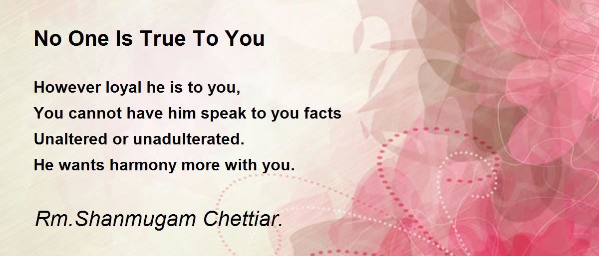 However loyal he is to you, You cannot have him speak to you facts Unaltered or unadulterated. He wants harmony more with you.