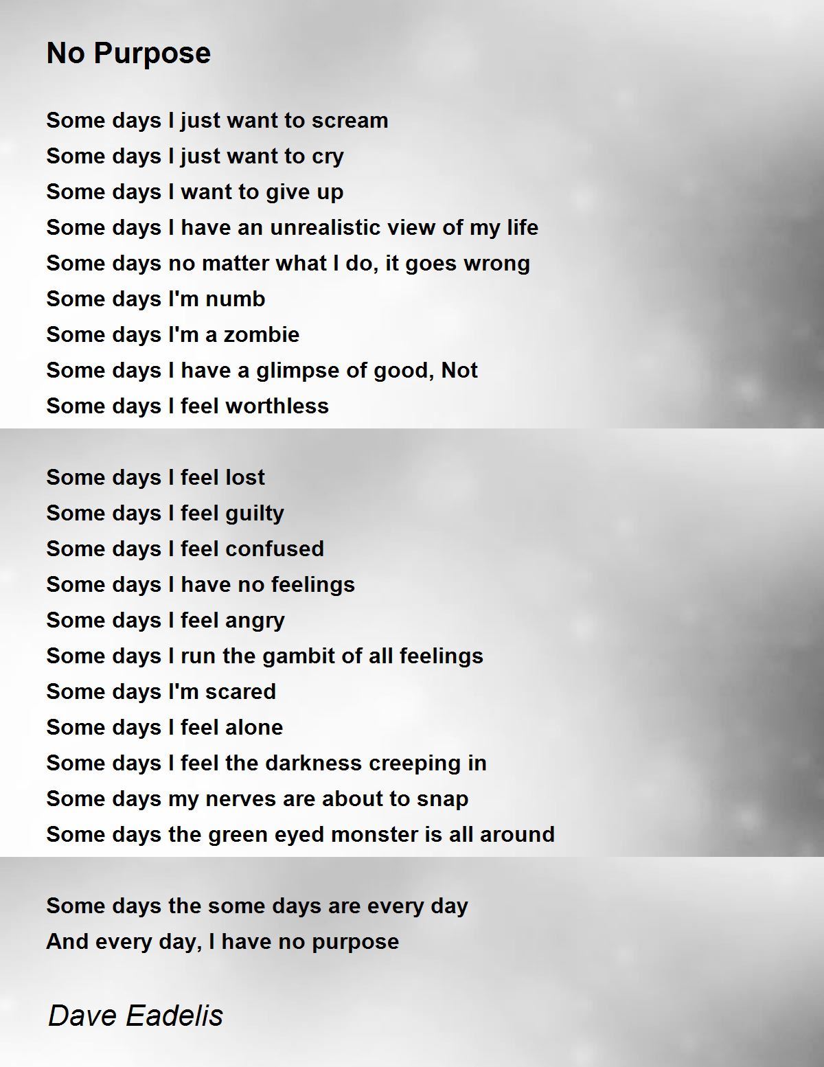 And every day, I have no purpose