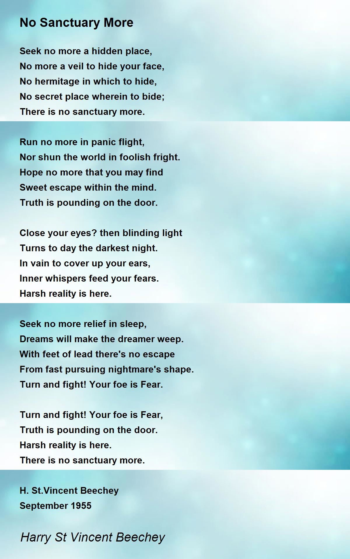 There is no sanctuary more.