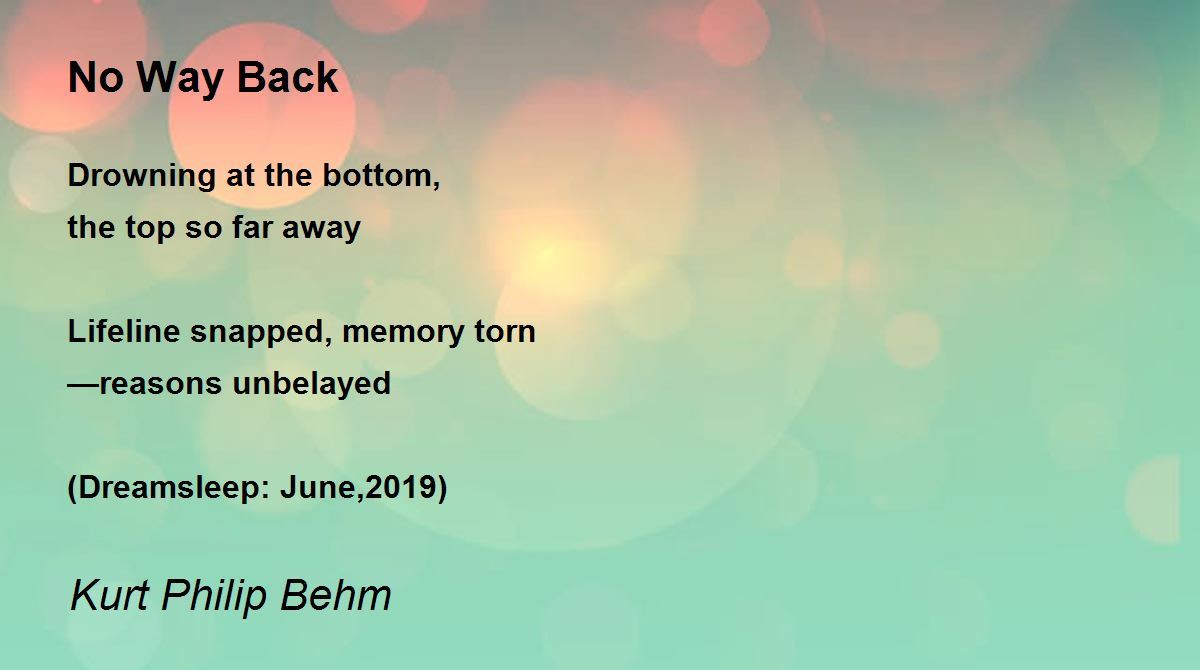 Drowning at the bottom, the top so far away Lifeline snapped, memory torn —reasons unbelayed (Dreamsleep: June,2019)