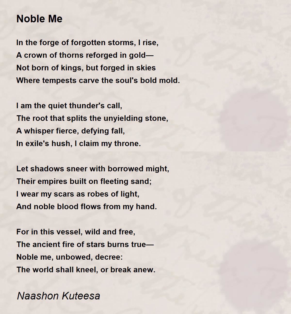 Noble me, unbowed, decree: