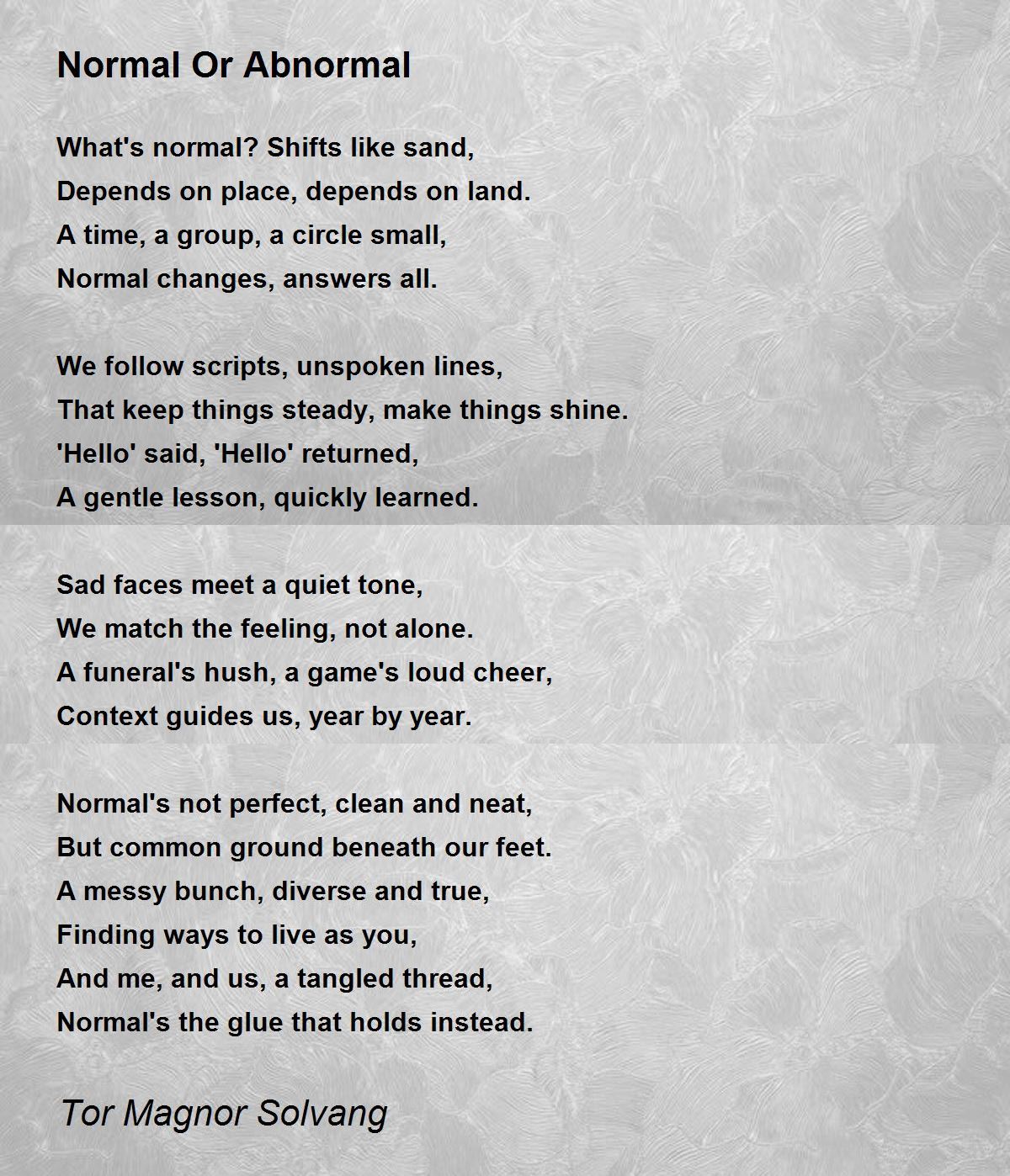 Normal's the glue that holds instead.
