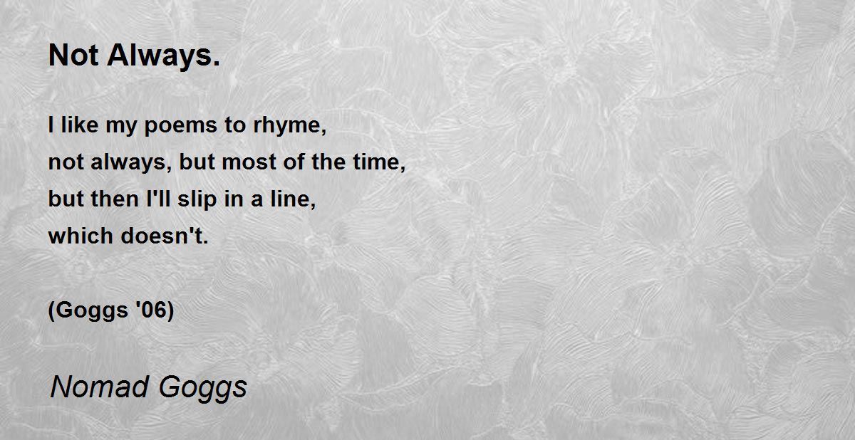 I like my poems to rhyme, not always, but most of the time, but then I'll slip in a line, which doesn't. (Goggs '06)