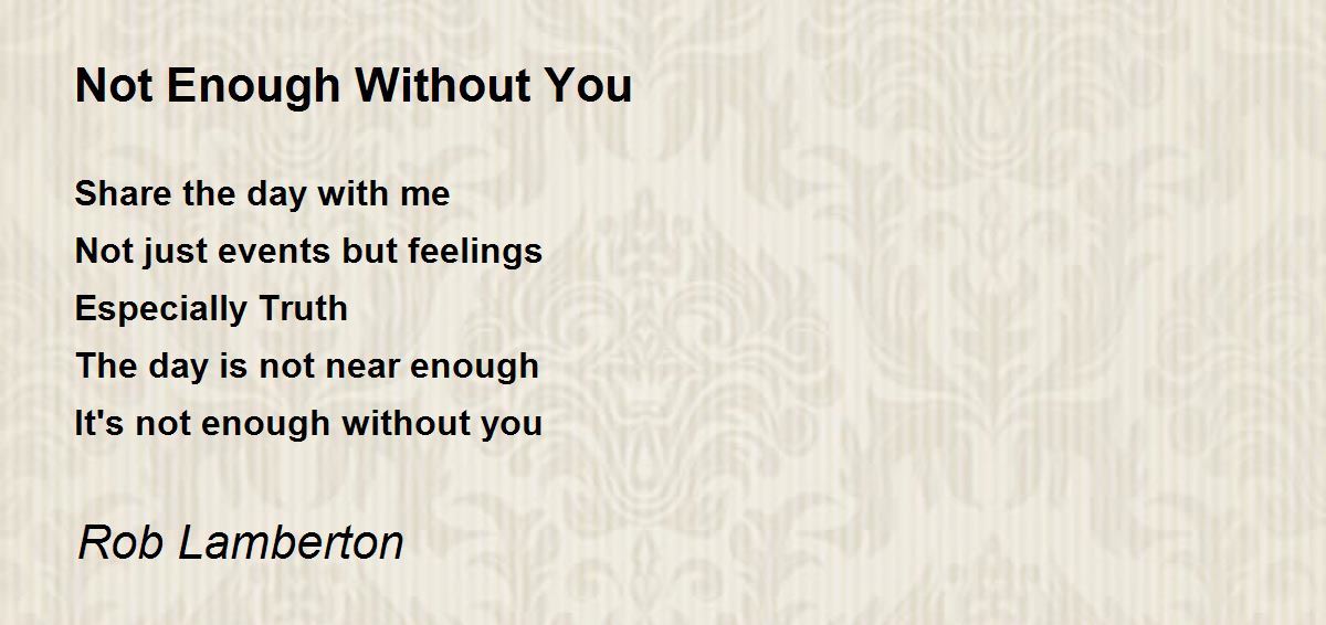 Share the day with me Not just events but feelings Especially Truth The day is not near enough It's not enough without you