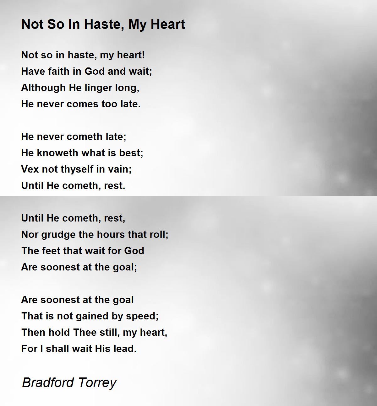 Not so in haste, my heart!
