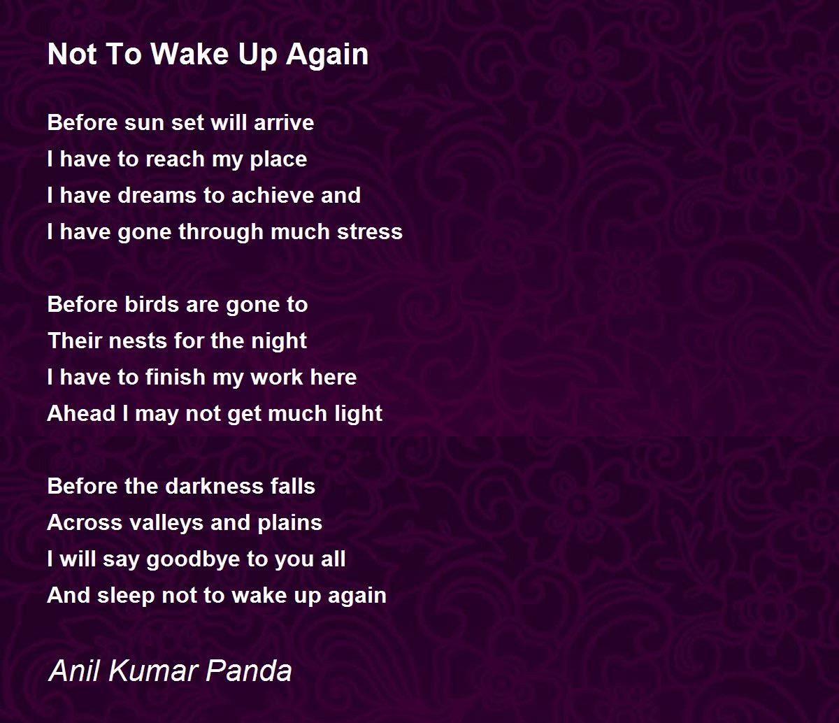 And sleep not to wake up again